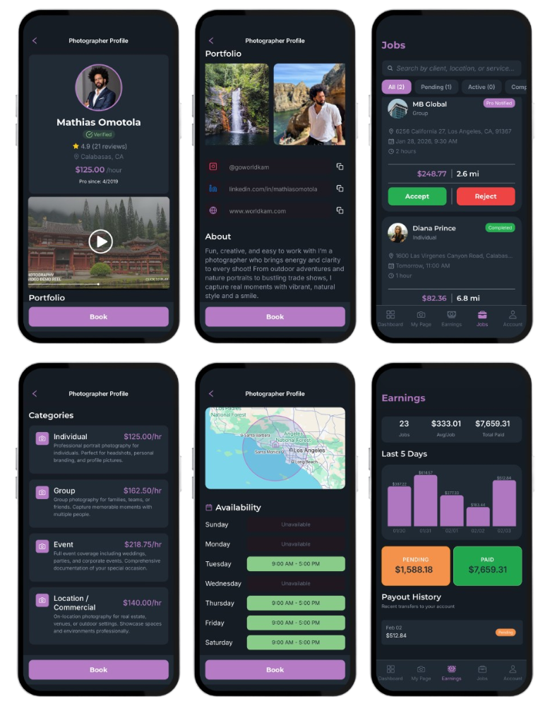 We only earn when you do: WorldKam takes a small commission on completed bookings, and you keep the rest. All Tips, travel fees, etc.—everything is yours.